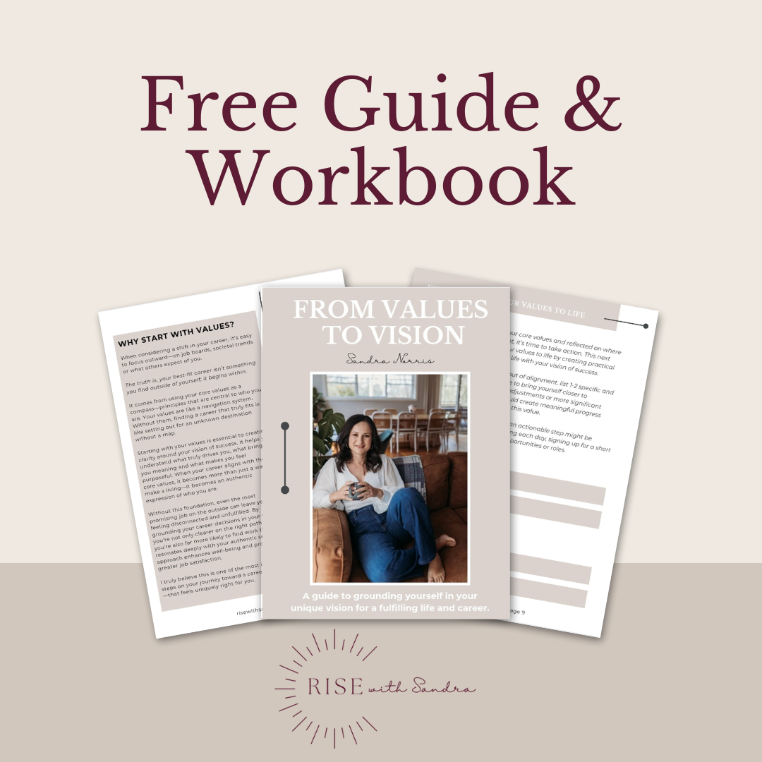 From Values to Vision Guide and Workbook This is Your Guide to Clarity – Ground Yourself in Your Unique Vision for a Fulfilling Life and Career First Name Last Name Email Address Get my freebie! By signing up to receive this free resource, you agree to join my monthly newsletter. You can unsubscribe at any time via the link in my emails. Thank you for downloading From Values to Vision! Check your inbox! Your free guide is on its way! Be sure to open it and dive into the actionable steps that will help you gain clarity on your career path. ❤️ Let’s chat!Instagram Email You deserve a life rich in meaning, passion and balance... You deserve to RISE 〰️ You deserve a life rich in meaning, passion and balance... You deserve to RISE 〰️ You deserve a life rich in meaning, passion and balance... You deserve to RISE 〰️